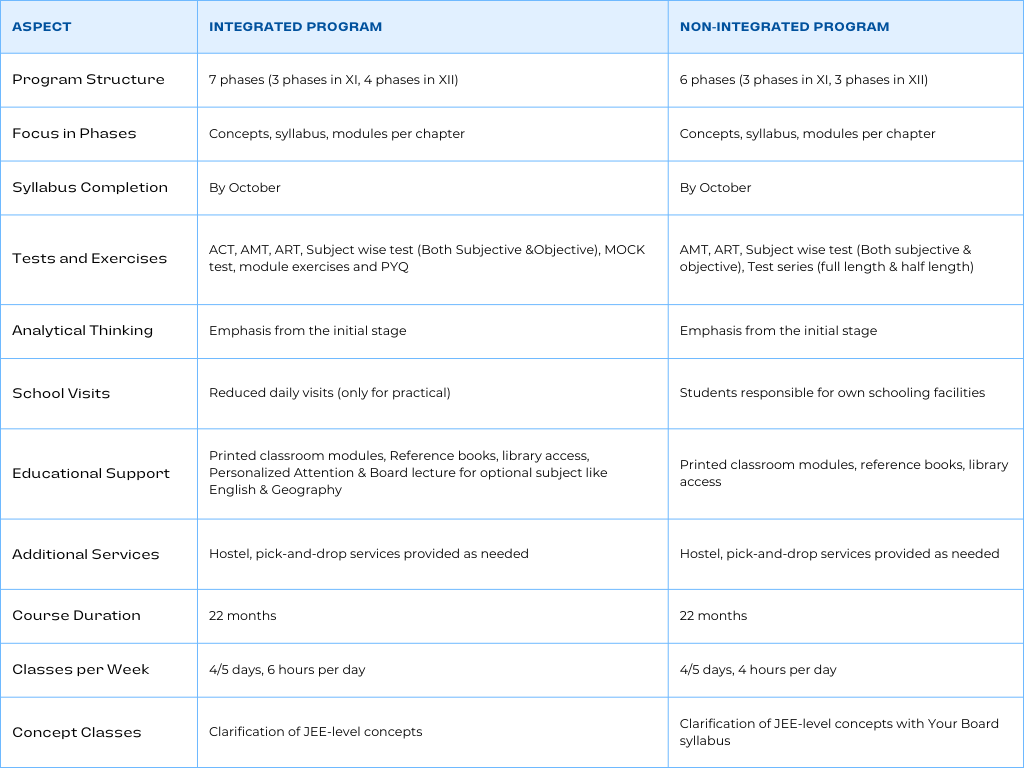 - Integrated JEE (Main & Advanced) syllabus with Class 11th & 12th Board preparation